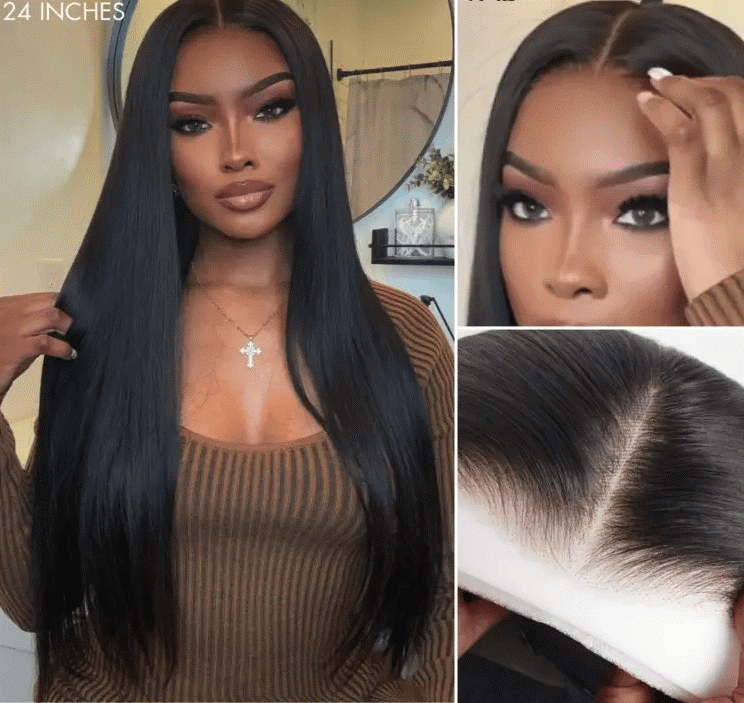 Kleberlose, seidig glatte HD-Spitzenperücke – Natürlicher Haaransatz, glatt und voluminös